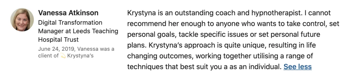 Seen on more than fifty television shows, including Britain’s Got Talent Known for direct, fast and irreversible change with elite-level clients